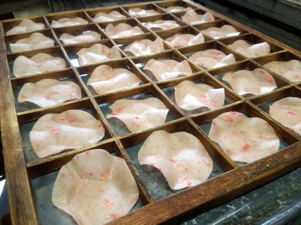 今日は、薄焼きあばれせんべい、青のりとエビ白醤油味。小粒角、抹茶糖、黒糖、生姜糖掛け。青のりの短冊型せんべい。大判黒ごませんべい。他、醤油味せんべいを3種焼きました。