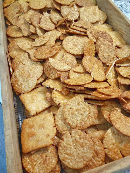 今日は、大判ザラメ、梅ザラメ、七味せんべい。小粒丸海老と黒ごまの白醤油味せんべい。大判中判の黒ごませんべい。他、メッセージ印刷用、丸の醤油と白醤油せんべいを作りました。