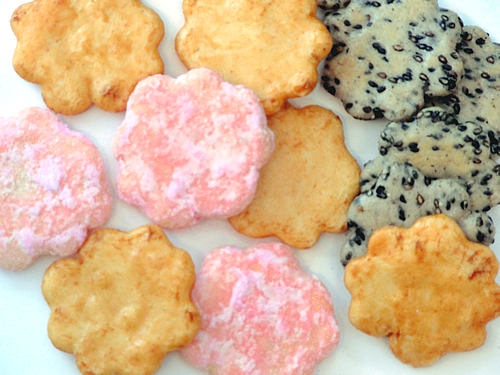 今日は、イラストメッセージ印刷用丸角せんべい、花型の砂糖そぼろ掛け、ザラメ、黒ごま醤油と多種焼きました。花型のおせんべいは、一袋に数種が入りアソートなので、すべての種類を揃えるのがなかなか大変です。