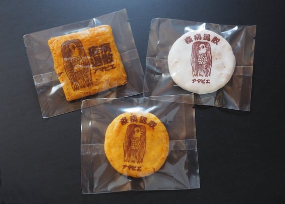風林堂ではこの言い伝えにあやかり、ウイルス感染の収束を願い「アマビエ」の肖像を描いたおせんべいを作りました。