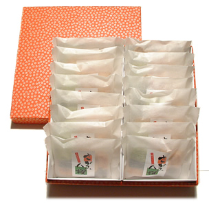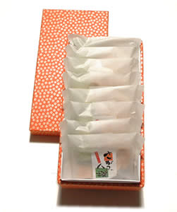 ●伝統柄の不織布巾着袋に7袋を詰めた、お手頃サイズのギフト。
