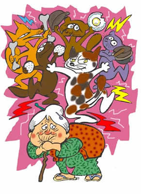 むかし大島に善太郎婆というお婆さんが住んでおりました。 亭主の善太郎に先立たれてさみしかったので、一匹の大きな猫を相手に暮らしておりました。 この猫は大変に利口な猫で、家に上がるときにはいつも足をぞうきんで拭いて上がったそうです。