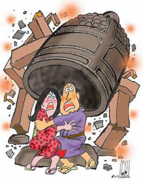 まさに天柱砕け地軸折れ、平和な村里はたちまち阿鼻叫喚の巷になりました。